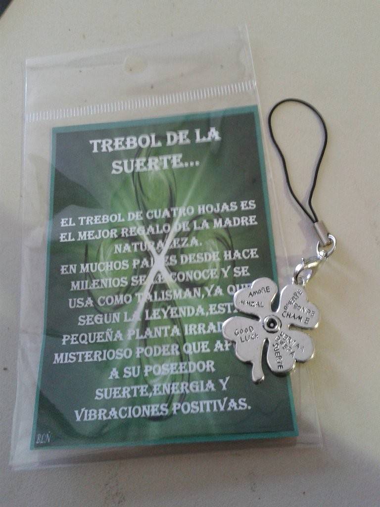 AMULETO TREBOL METAL amuleto metálico para buena suerte y fortuna.