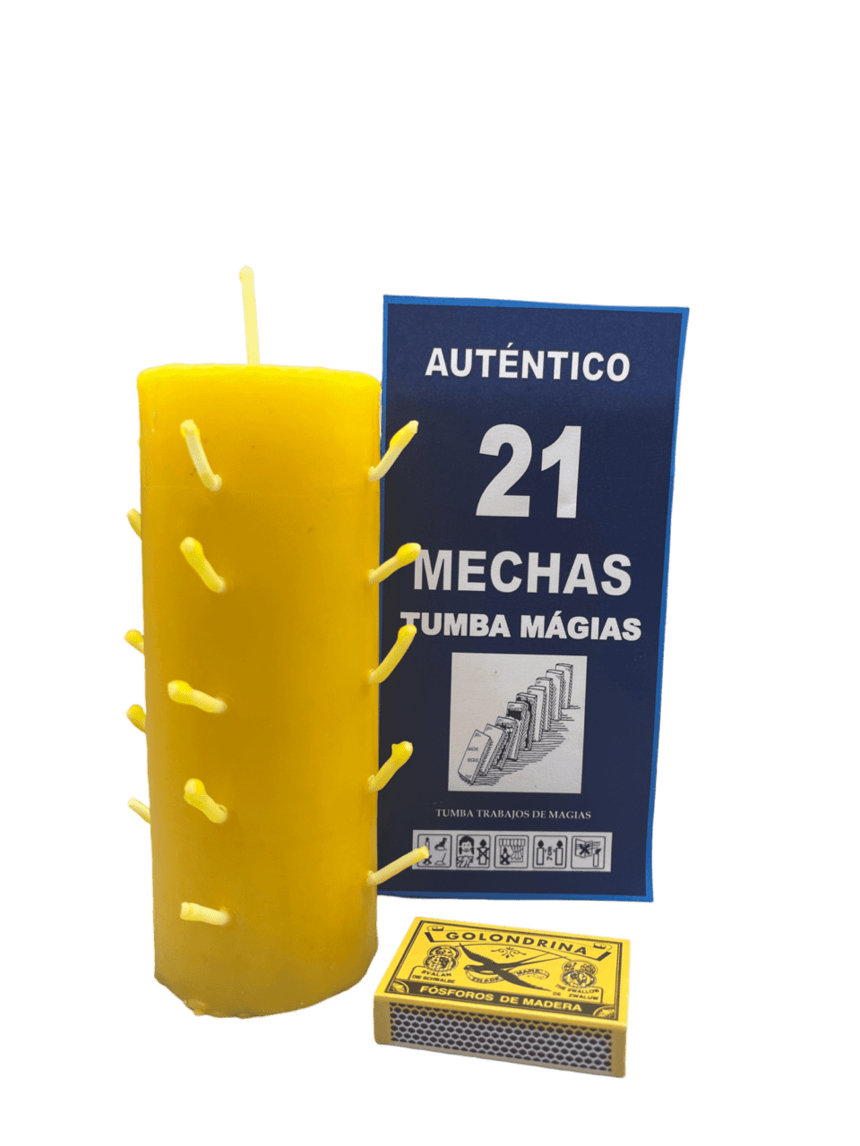 Auténtico Velón 21 Mechas Amarillo orientado a atraer éxito, movimiento positivo, claridad mental y buena suerte.