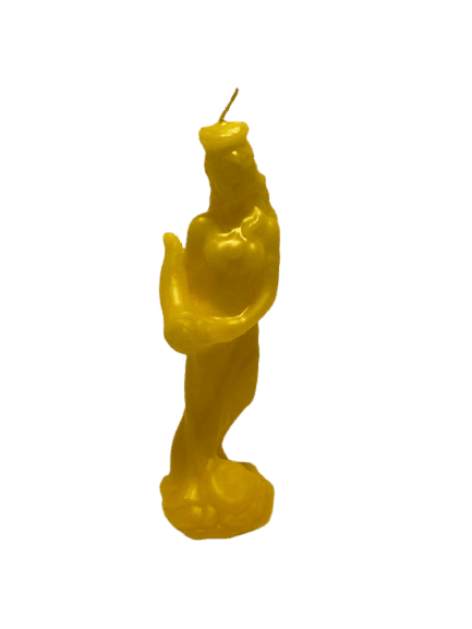 La diosa de la fortuna en cera es un talismán místico que atrae riqueza, suerte y protección. Ideal para altares y espacios de meditación.