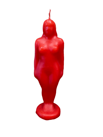 Figura de Cera Mujer Roja – Escultura espiritual de pasión y vitalidad femenina.