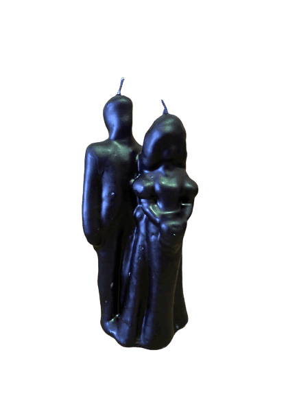 La figura de novios en cera negra representa la intensidad y el poder del compromiso. Una pieza espiritual cargada de simbolismo.