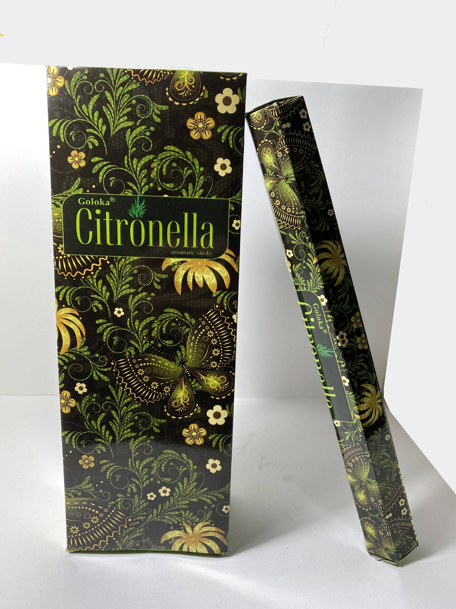 Incienso Citronela Anti-Mosquitos con fragancia fresca y cítrica, ideal para ahuyentar insectos de forma natural y perfumar espacios con un aroma limpio.