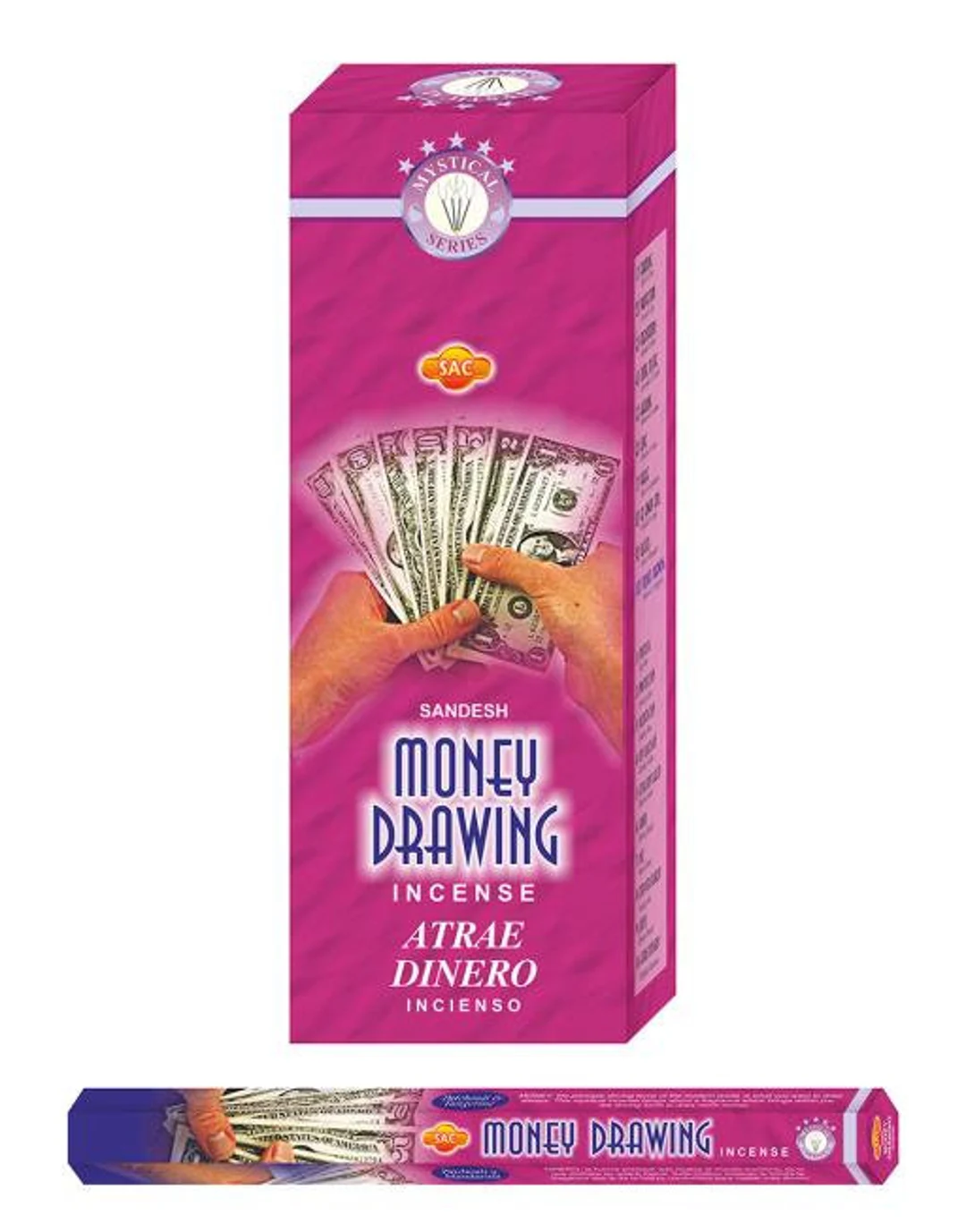 Incienso Money Drawing con aroma fuerte asociado a atraer fortuna, prosperidad y oportunidades económicas.