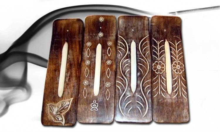 Porta incienso de madera decorado artesanal.