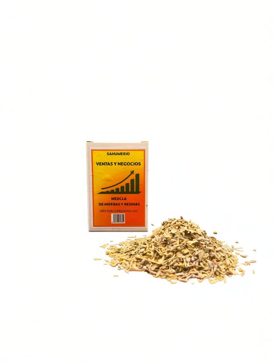 Sahumerio Ventas y Negocios formulado para activar la energía del dinero, atraer clientes y favorecer el éxito económico. 30gr aprox