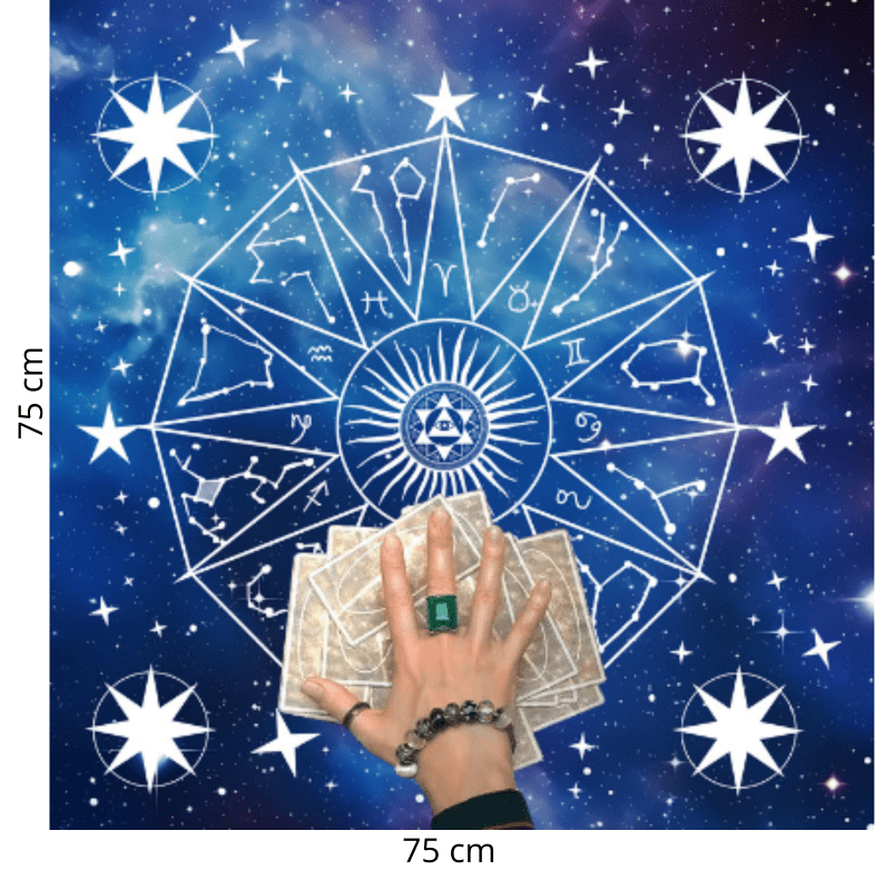 Tapete Tarot Constelaciones Azul ideal para meditaciones, lecturas astrológicas y equilibrio energético.