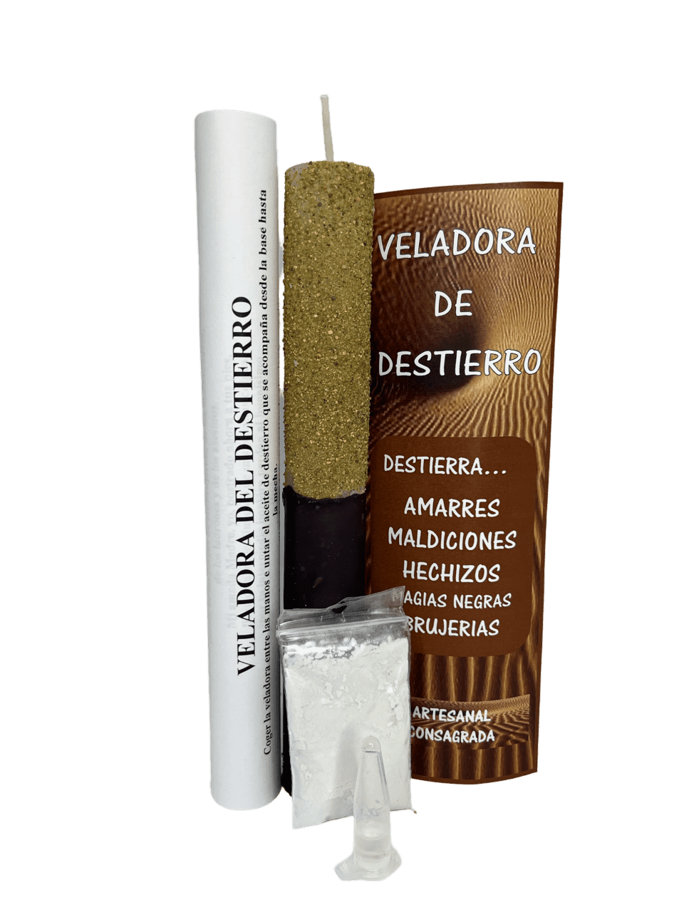 La Veladora Destierro está consagrada para alejar personas indeseables, malas influencias y energías dañinas. Su energía ayuda a mantener alejados enemigos y situaciones negativas.