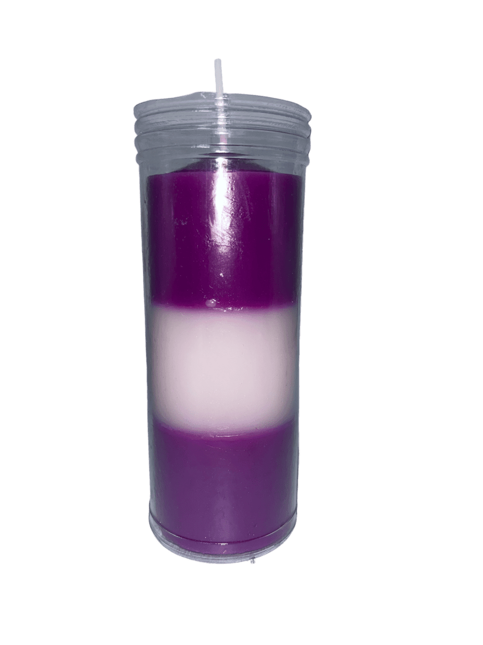 Velón 3 colores lila-blanco-lila para limpieza y espiritualidad.