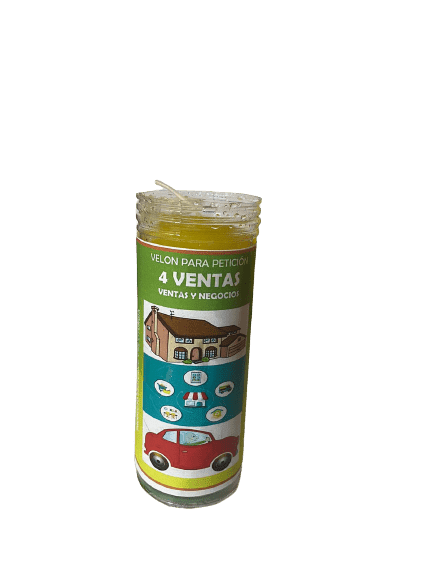 El Velón 4 Ventas se utiliza para atraer prosperidad en el comercio, abrir caminos en negocios y multiplicar las oportunidades económicas. Su luz simboliza expansión y abundancia.
