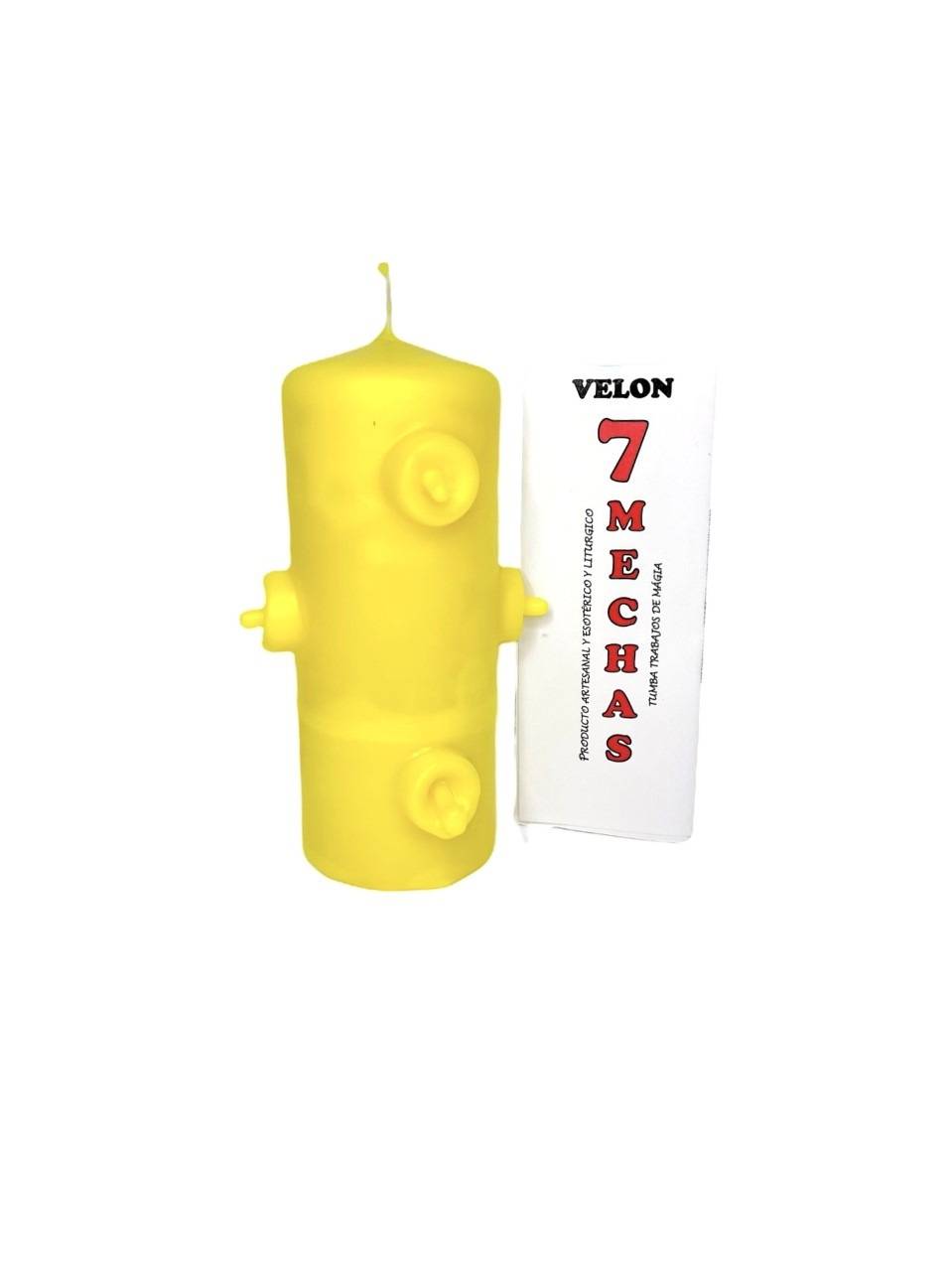 Velón 7 mechas amarillo perfecto para atraer suerte, éxito, claridad y movimiento positivo.