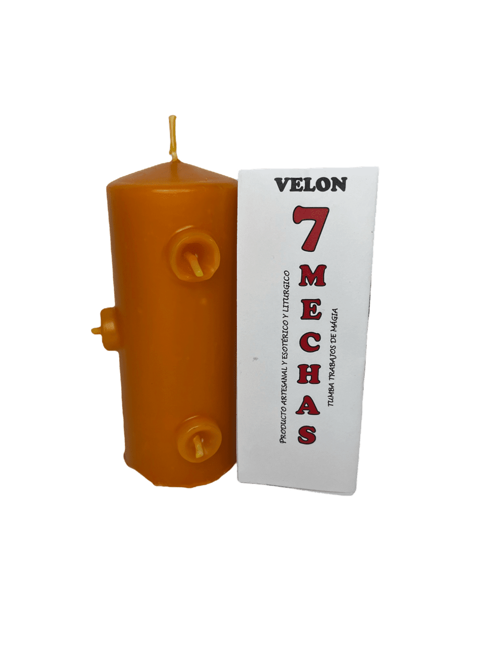 Velón 7 mechas naranja para creatividad, alegría y motivación.