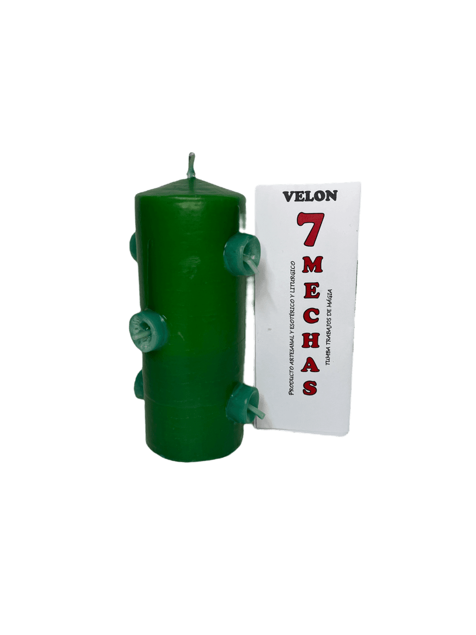 Velón 7 mechas verde para prosperidad, salud y crecimiento.