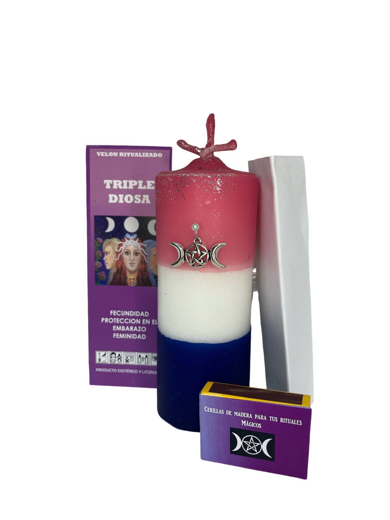 Velón Triple Diosa para intuición elevada, poder femenino sagrado y equilibrio espiritual profundo.