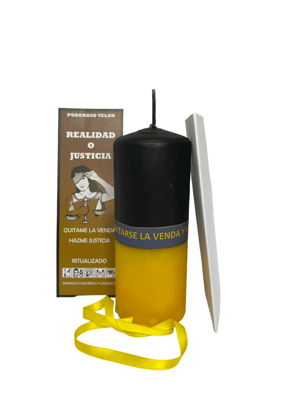 El velón Realidad o Justicia ayuda a ver situaciones tal como son, sin ilusiones ni engaños. Su energía favorece decisiones correctas, resolución de conflictos y claridad en temas legales o emocionales.
